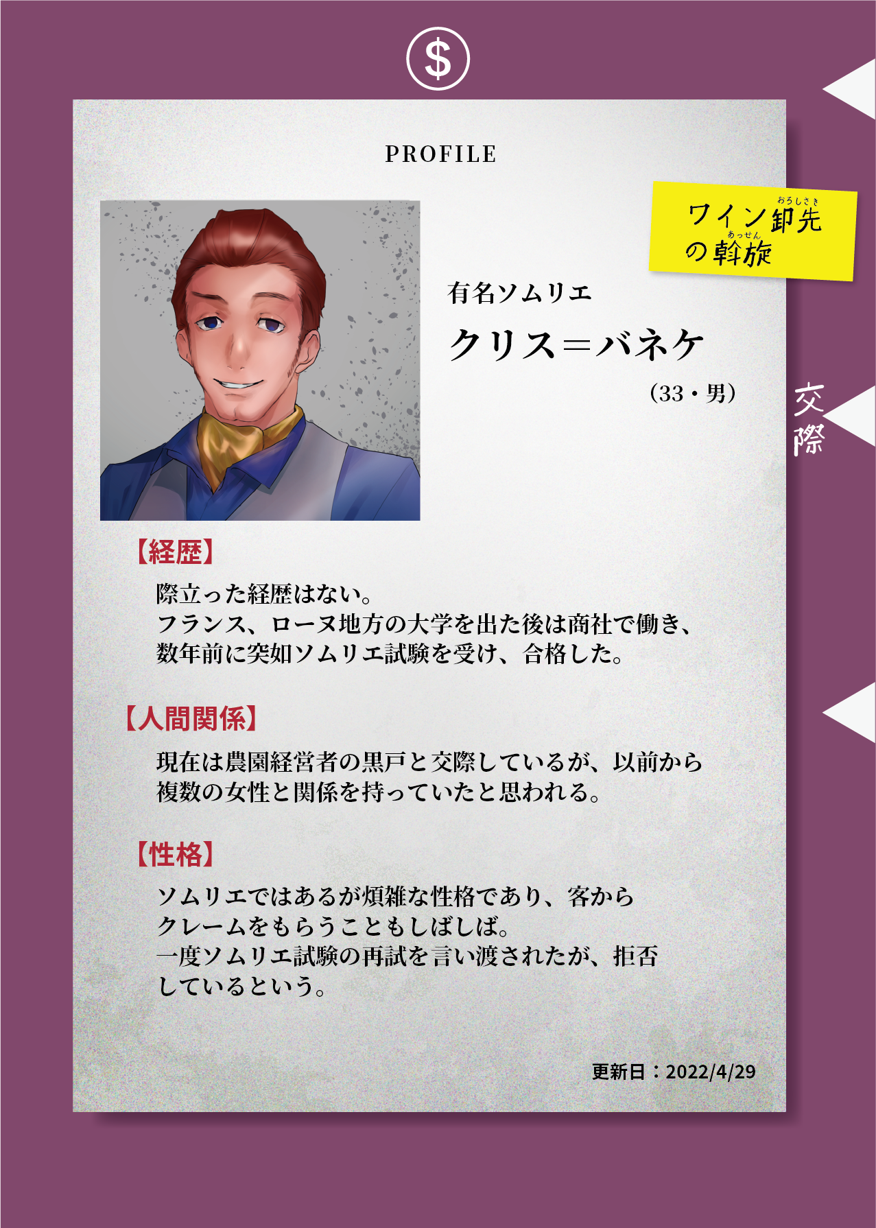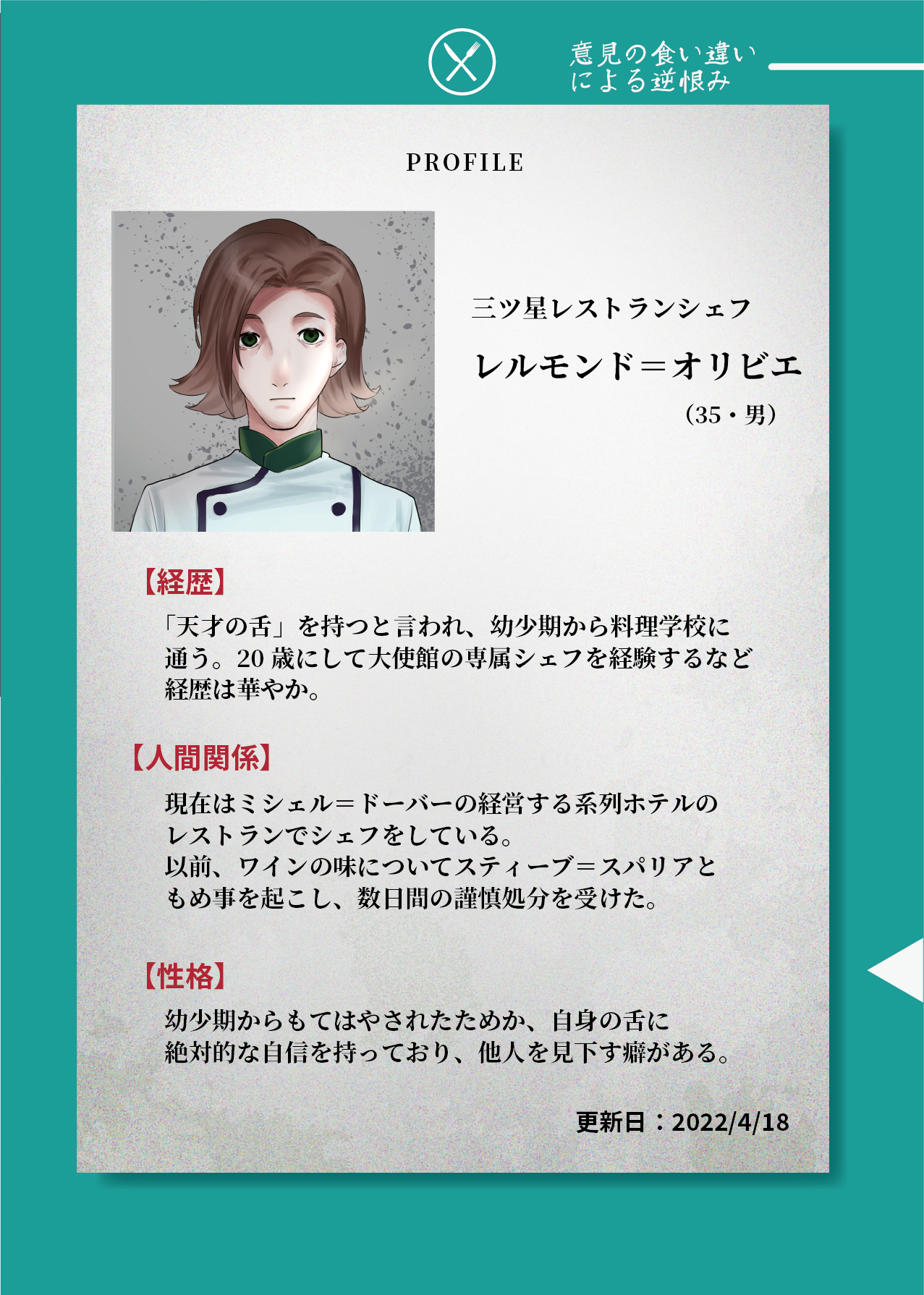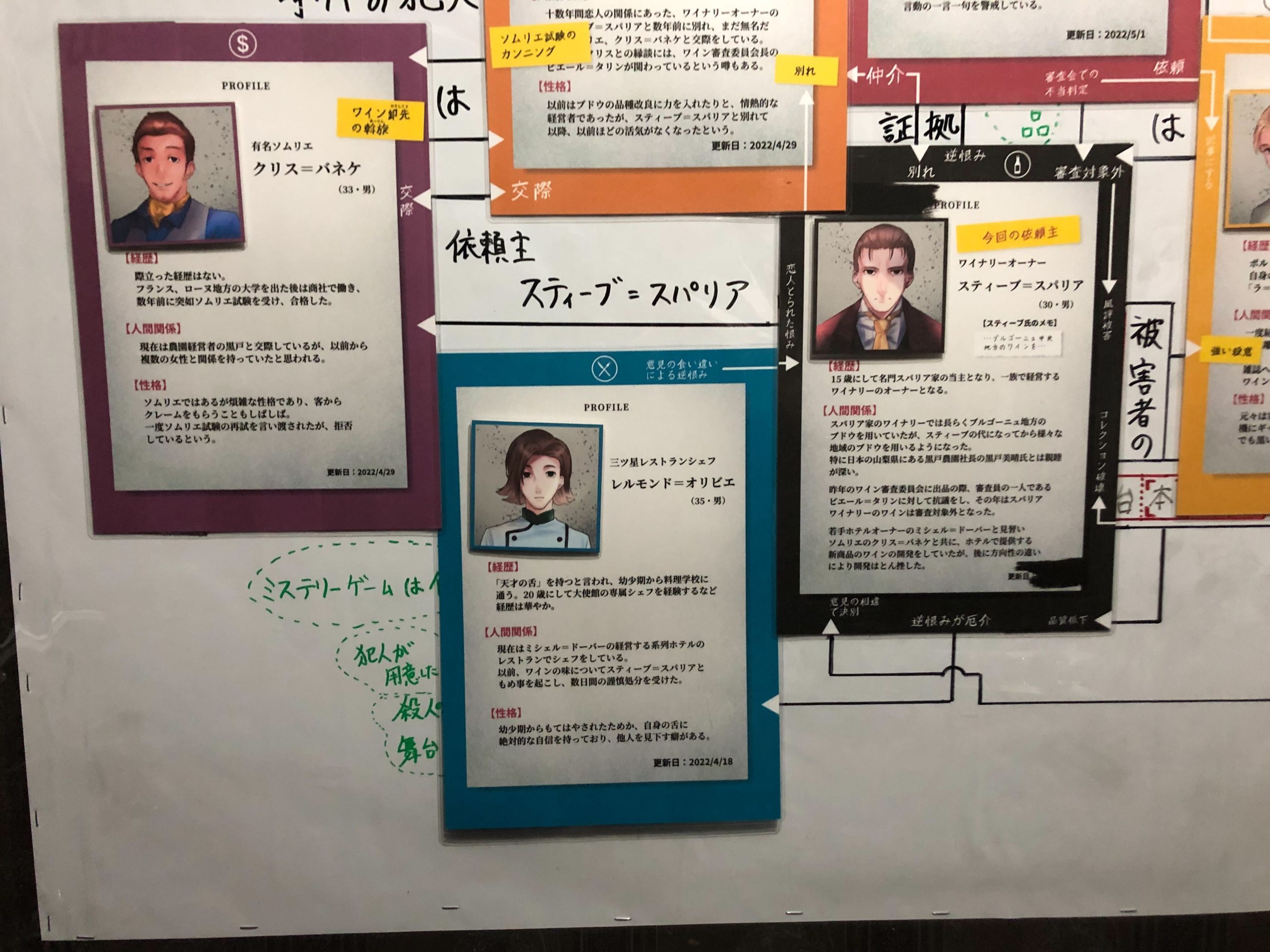 本案件の現場となった、容疑者スティーブ=スパリアのワインセラー内で発見された文章です。皆様が部屋の中の仕掛けを解き発見した封筒の中からは、当時のメンバー全員の罪を告発するという旨のメモ書きが見つかりました。警察局では、引き続き他の五人への聞き取り調査を行う予定です。