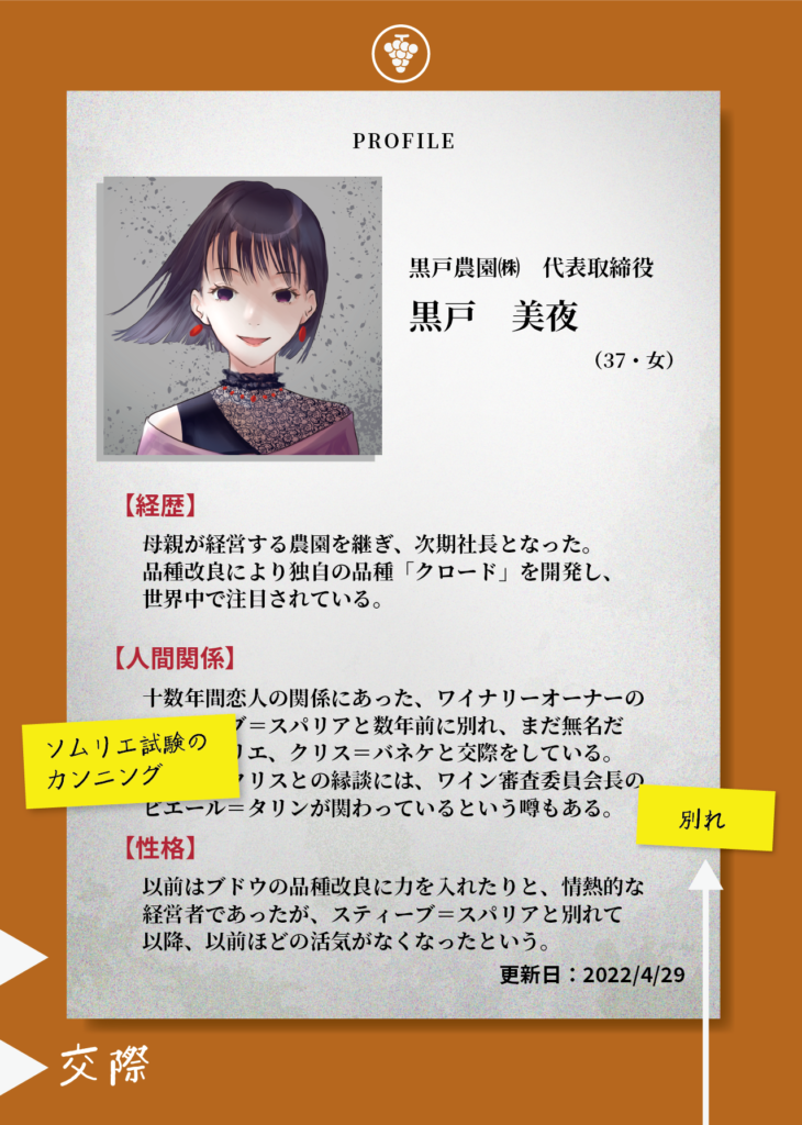 7人それぞれの人物関係が、矢印などで結ばれ詳細に記されています。