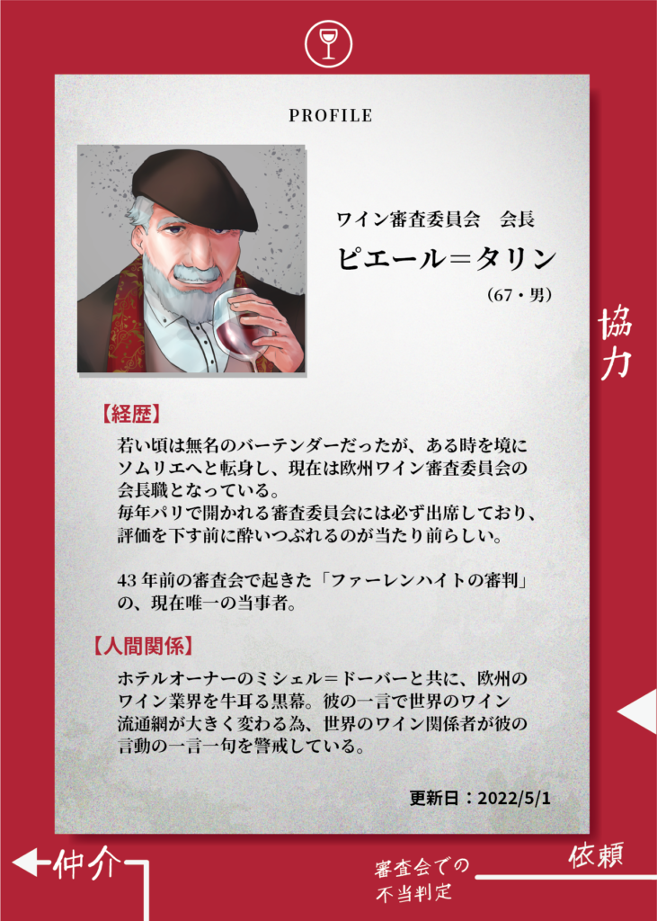 本案件の現場となった、容疑者スティーブ=スパリアのワインセラー内で発見された文章です。皆様が部屋の中の仕掛けを解き発見した封筒の中からは、当時のメンバー全員の罪を告発するという旨のメモ書きが見つかりました。警察局では、引き続き他の五人への聞き取り調査を行う予定です。