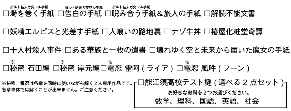 ※街歩き周遊謎は、「ふくろう巡り」「ルッソ前編」「執事メイ」のうち1種類のみのお渡しです。